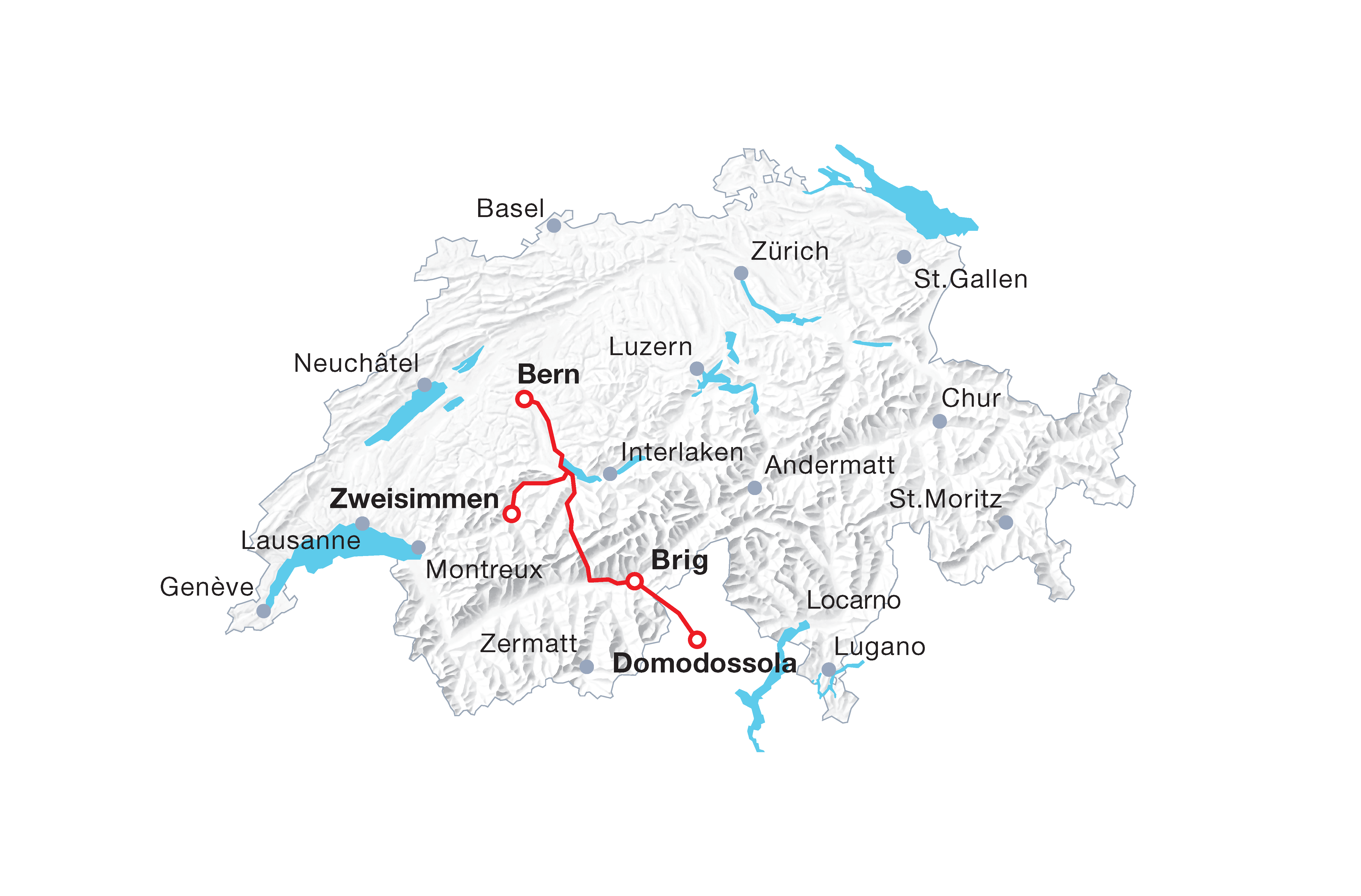 Travelling from Switzerland’s capital to northern Italy, your clients will enjoy sweeping views of the Bernese Oberland and Lake Thun, as well as deep Alpine valleys and dramatic viaducts. The journey is seamless – no train change is needed in Brig. 1st and 2nd class available.​