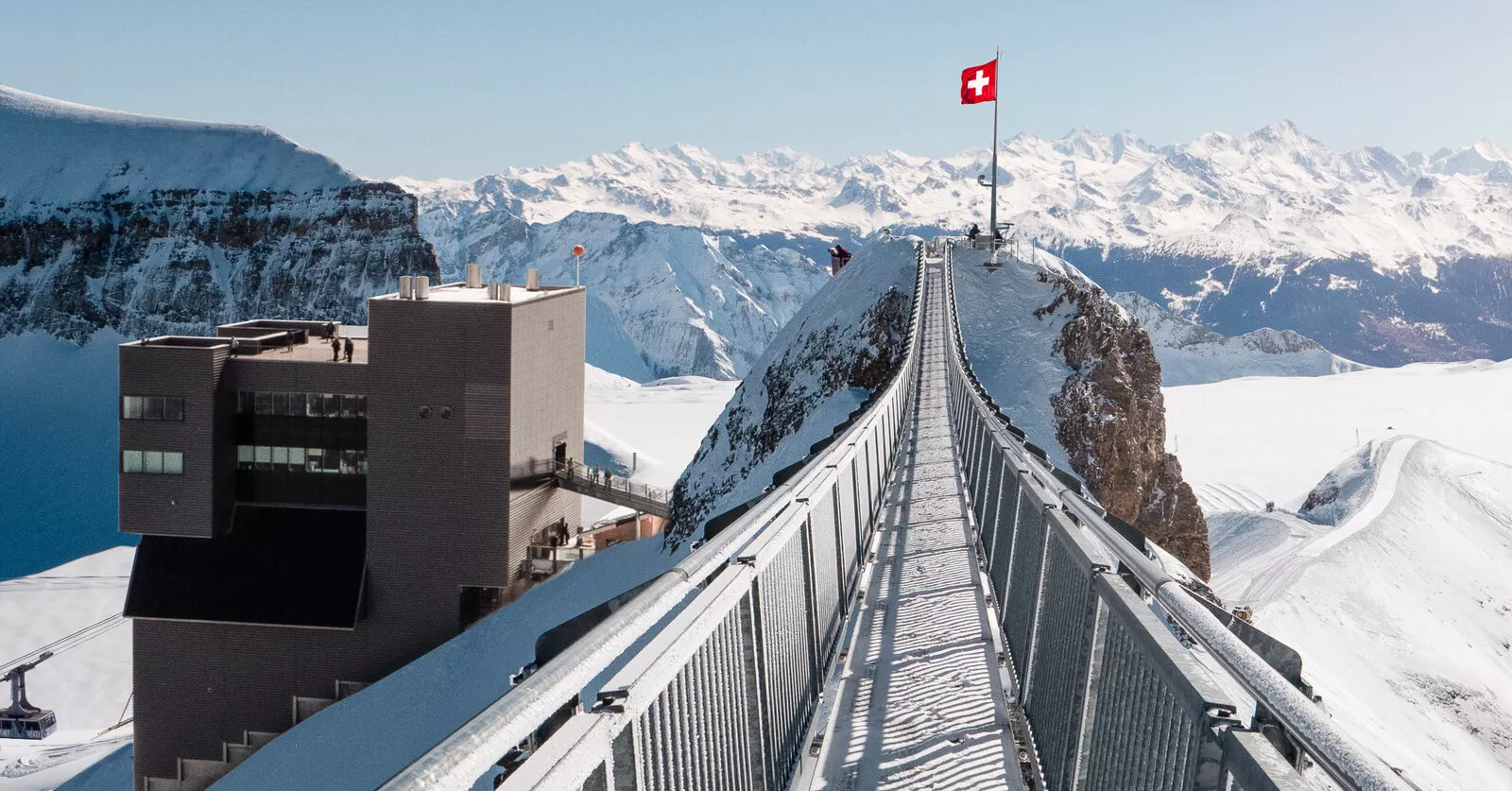 The world’s only peak-to-peak suspension bridge, open year-round, with views of iconic summits including Matterhorn, Mont Blanc and Jungfrau.