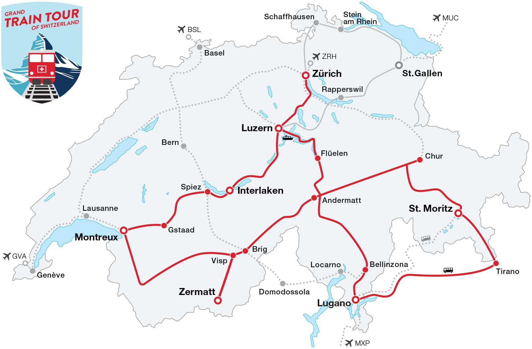 Karte: Grand Train Tour of Switzerland – «Klassiker» Tour