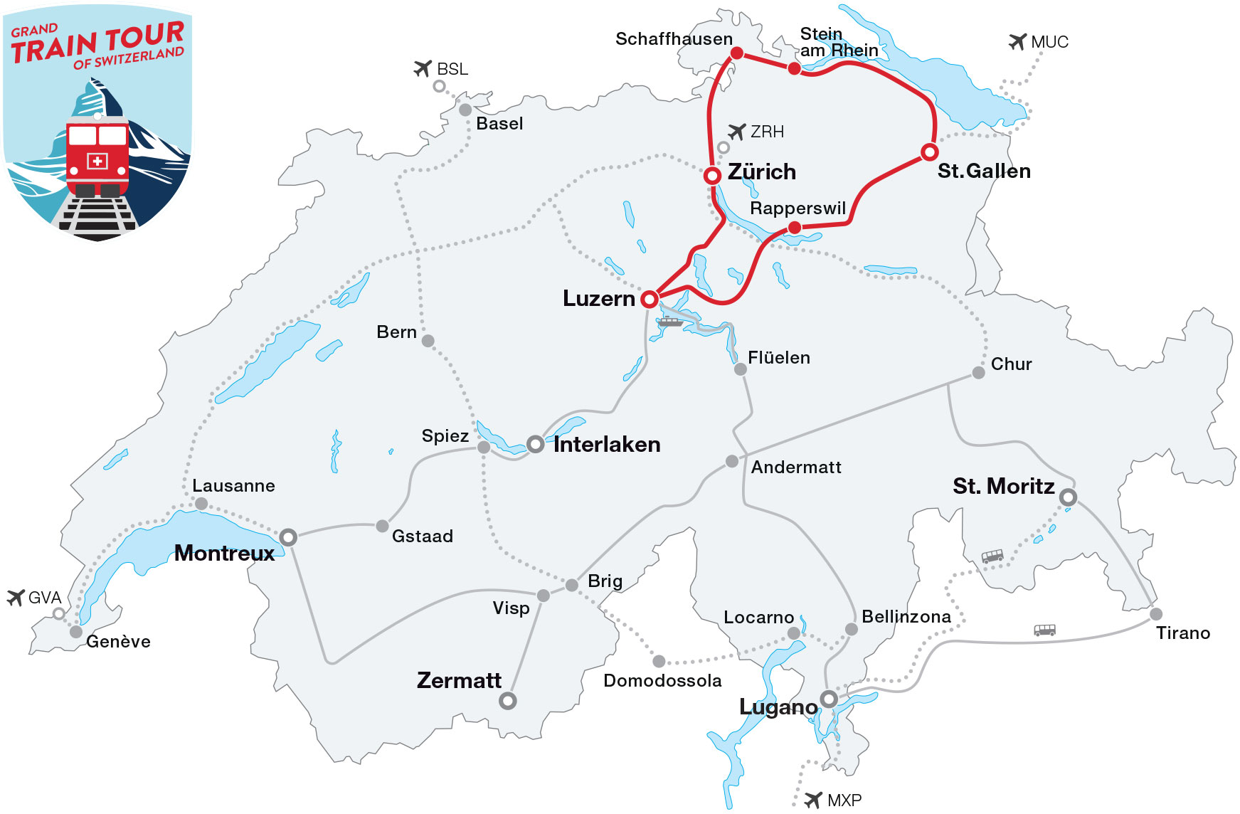 Karte: Grand Train Tour of Switzerland – «Faszination Wasser» Tour