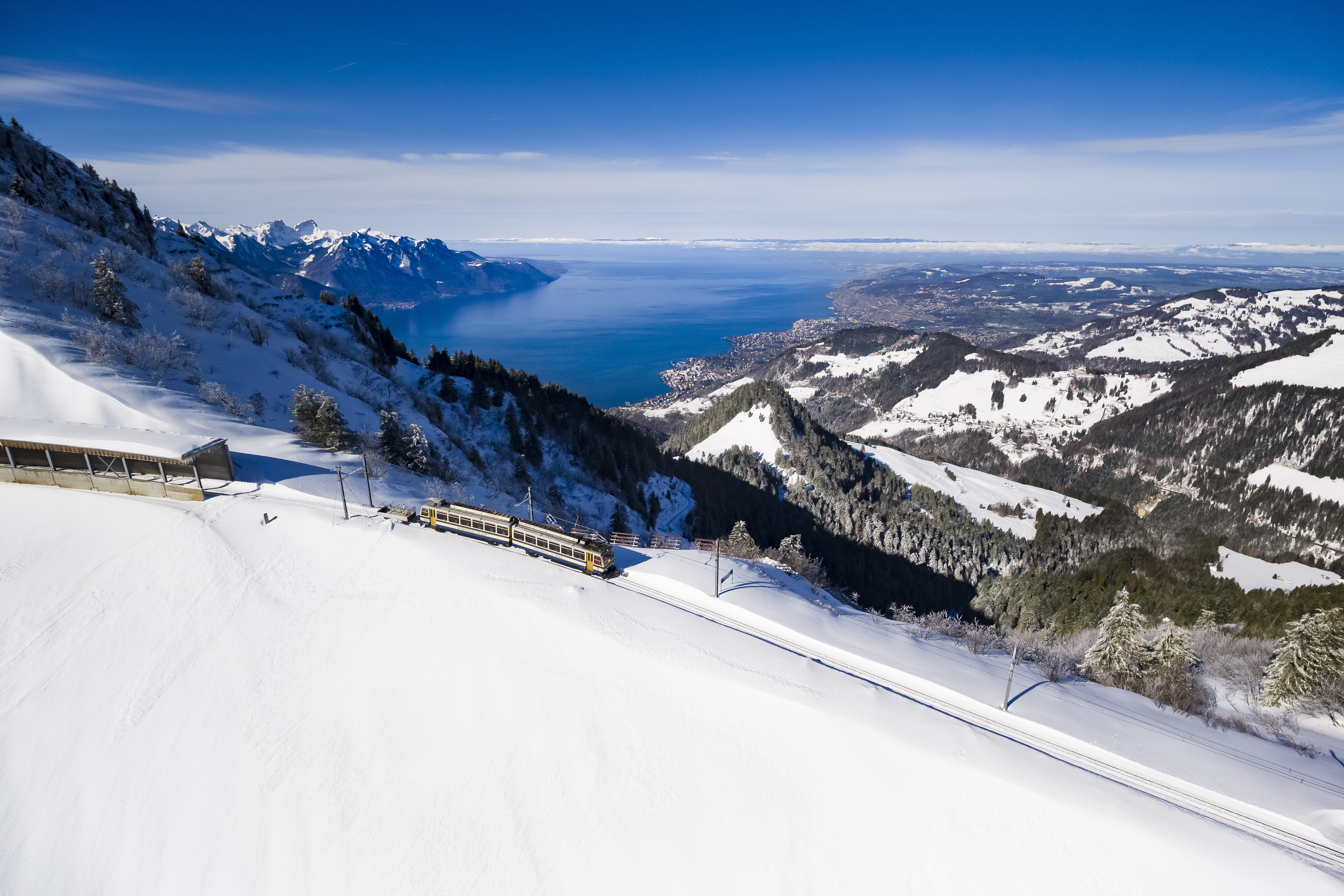Die Bahn auf den Rochers-de-Naye fährt ganzjährig – auch im Winter. Im Dezember nämlich, wohnt der Weihnachtsmann höchstpersönlich auf dem 2’000 Meter hohen Berg.