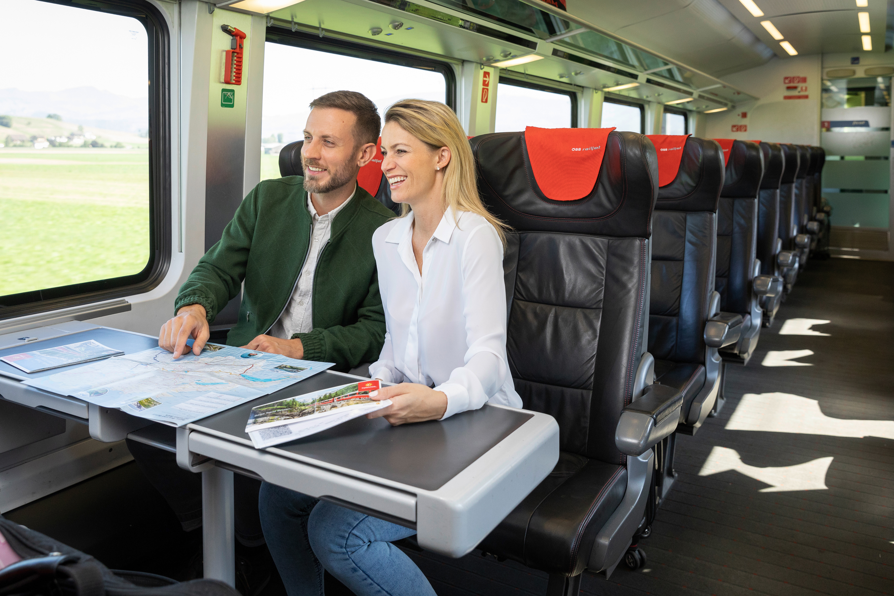 Tagsüber bringen die Railjets der ÖBB Reisende alle zwei Stunden nach Zürich. Von da aus bestehen gute Anschlüsse in alle Regionen der Schweiz. Je nach Reiseklasse profitieren die Gäste von unterschiedlichen Leistungen wie etwa einer Steckdose oder Service am Platz.