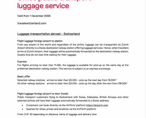 Our regular newsletter for the travel trade industry contains the latest sales and product updates regarding Swiss public transport. Sign up and receive our newsletter four times a year.