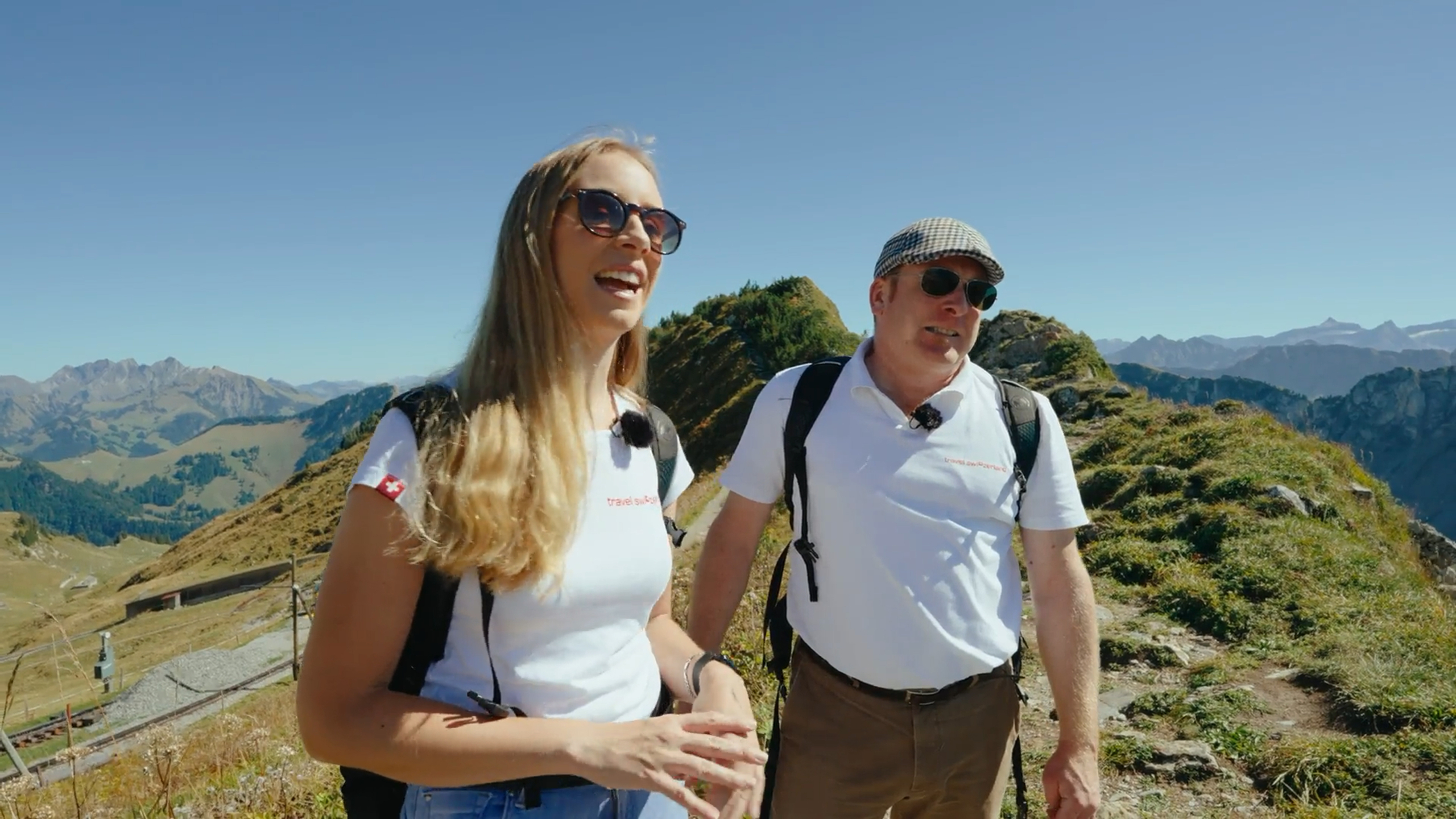 In Montreux, Travel Switzerland’s excursion experts Danielle and Andy set off to discover the lakeside town’s local mountain, the 2,042-metre-high Rochers-de-Naye. Here, a historic cogwheel railway operated by the MOB climbs high above Lake Geneva to the summit, where the pair enjoy views of Lavaux’s UNESCO vineyards and the surrounding Alps. Whether in summer or winter, the mountain is a highlight for families, hikers and nature lovers.