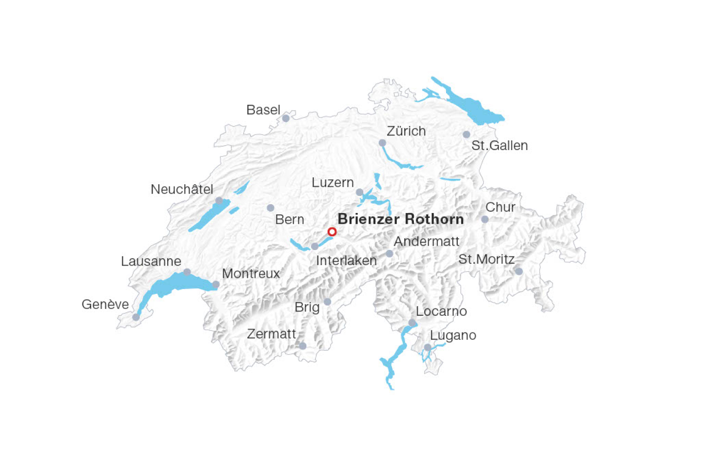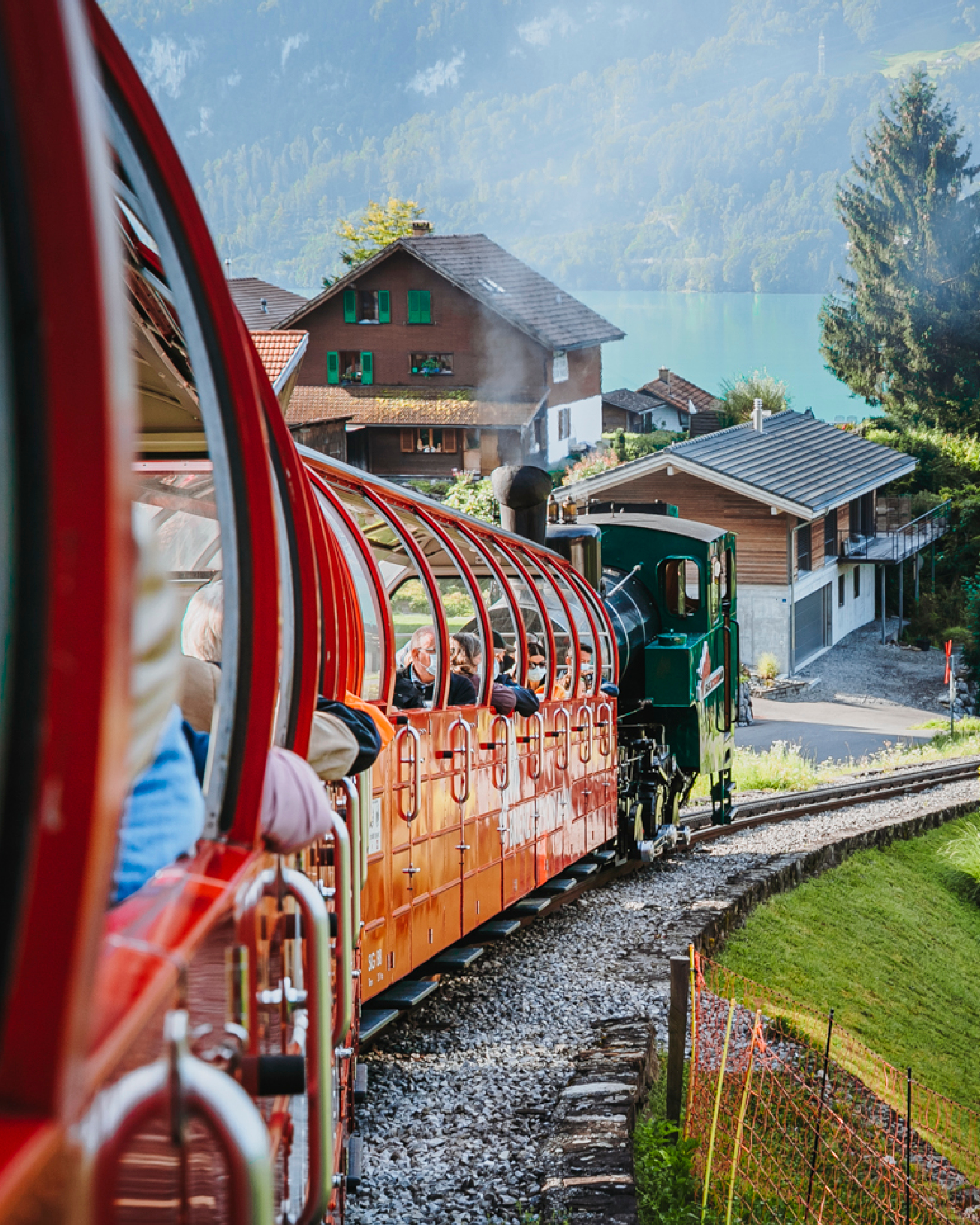 Passengers depart from Interlaken Ost (or Luzern) to Brienz and continue by steam-powered cog railway to Brienz Rothorn – an unforgettable hour’s journey. Alternately, they can take the Postbus to Sörenberg and ascend to the top by cableway.​
