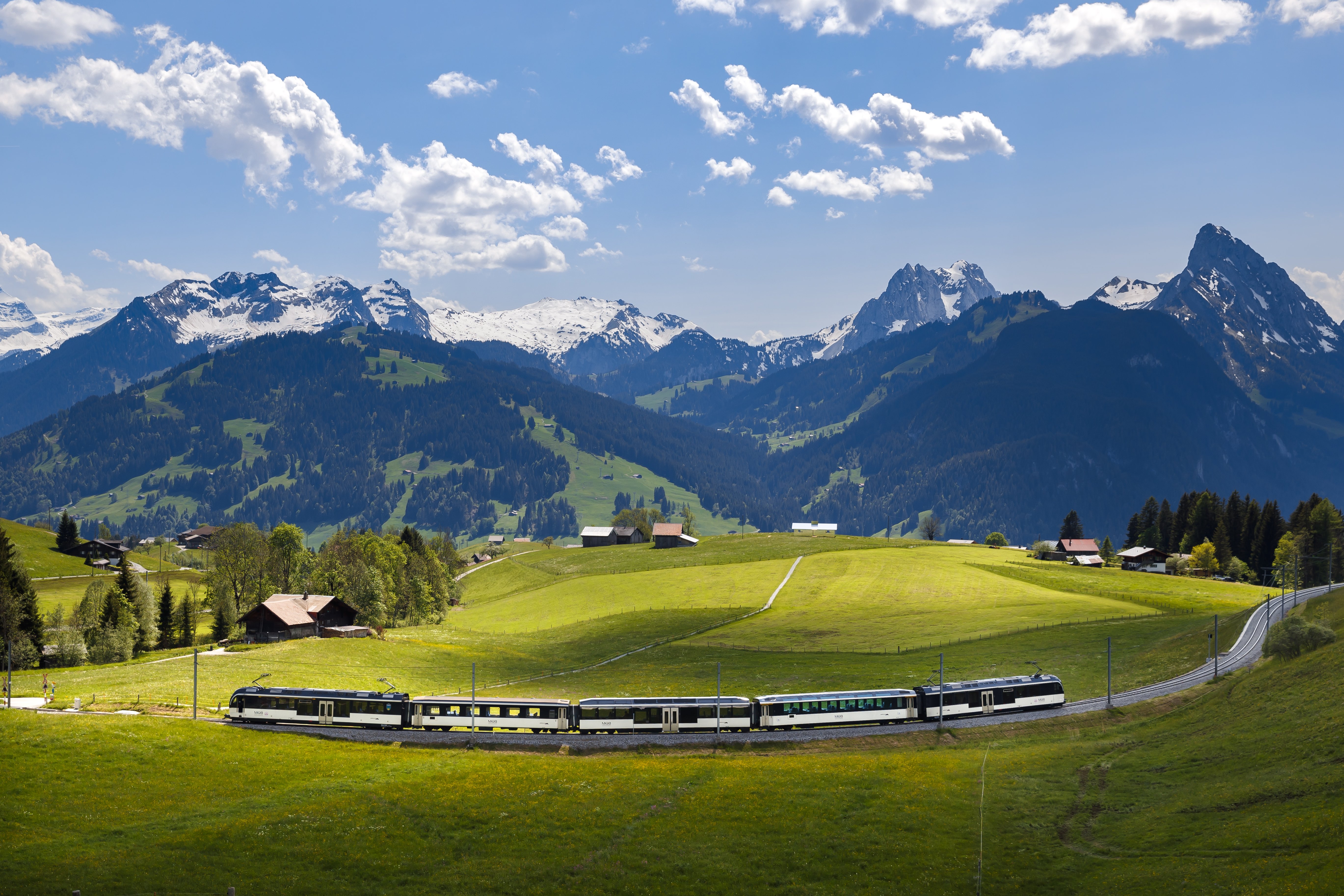 The GoldenPass scenic route runs from Zweisimmen in the Bernese Oberland towards Montreux, the fashionable resort on the shores of Lake Geneva.