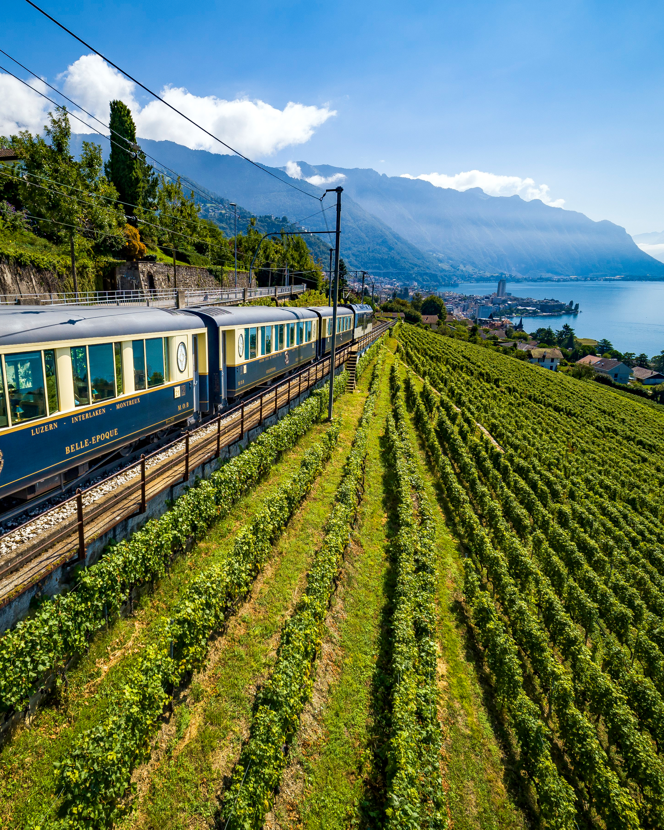 The journey starts in Montreux aboard the GoldenPass Belle Epoque (1st or 2nd class) and leads to the Gruyère region. Your clients explore Gruyère's old town, visit the local show dairy and the chocolate factory in Broc. Duration: approx. 7 h 30 min. ​