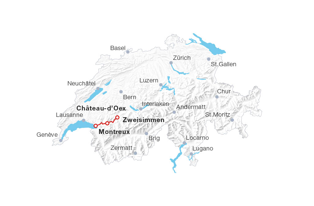 Train journey – Scenic train ride aboard a MOB GoldenPass train from Montreux or Zweisimmen to Château-d’Oex and back.