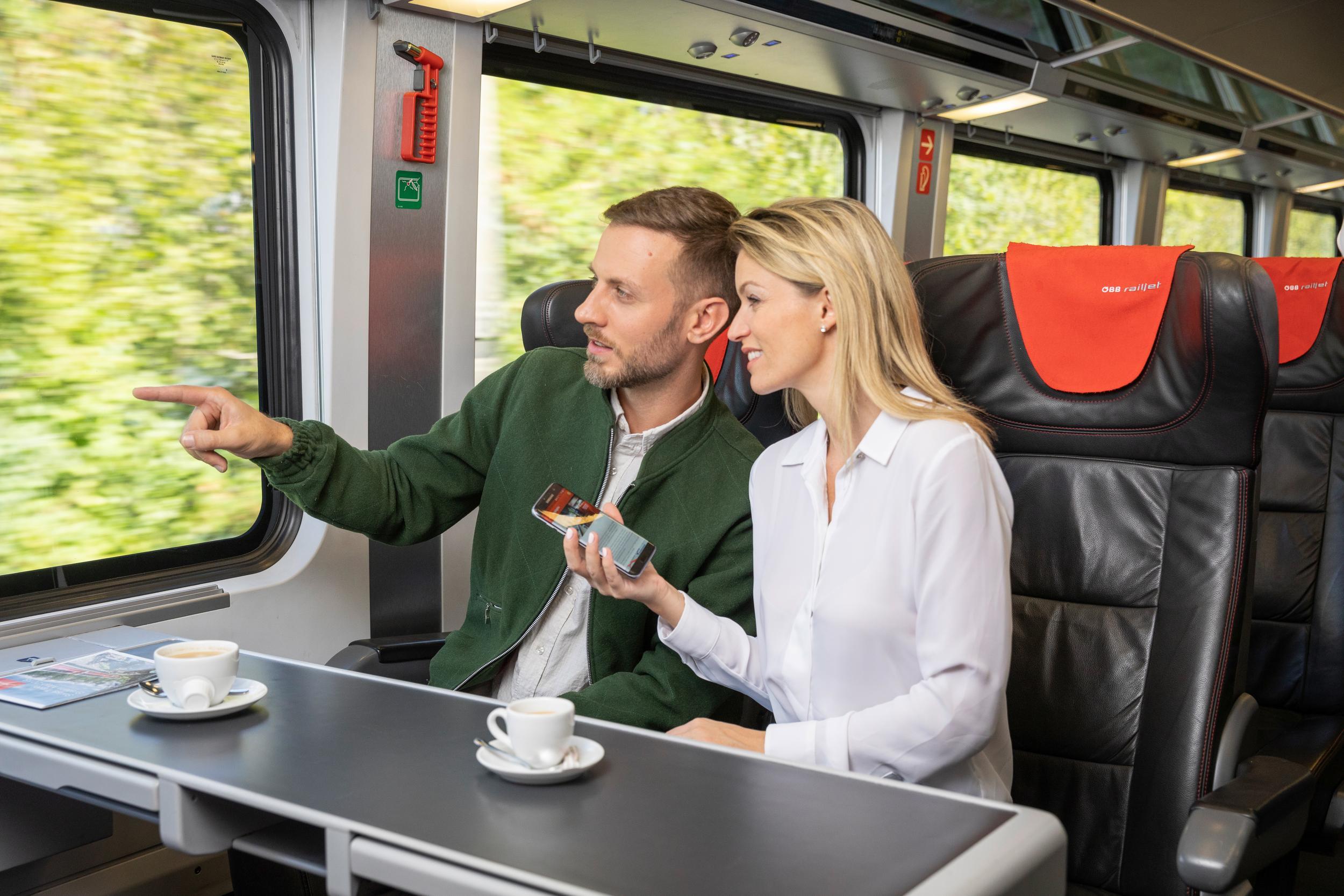 Onboard bistro. 1st class travellers: service at seat. Welcome drink for business class travellers. Special zones